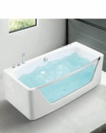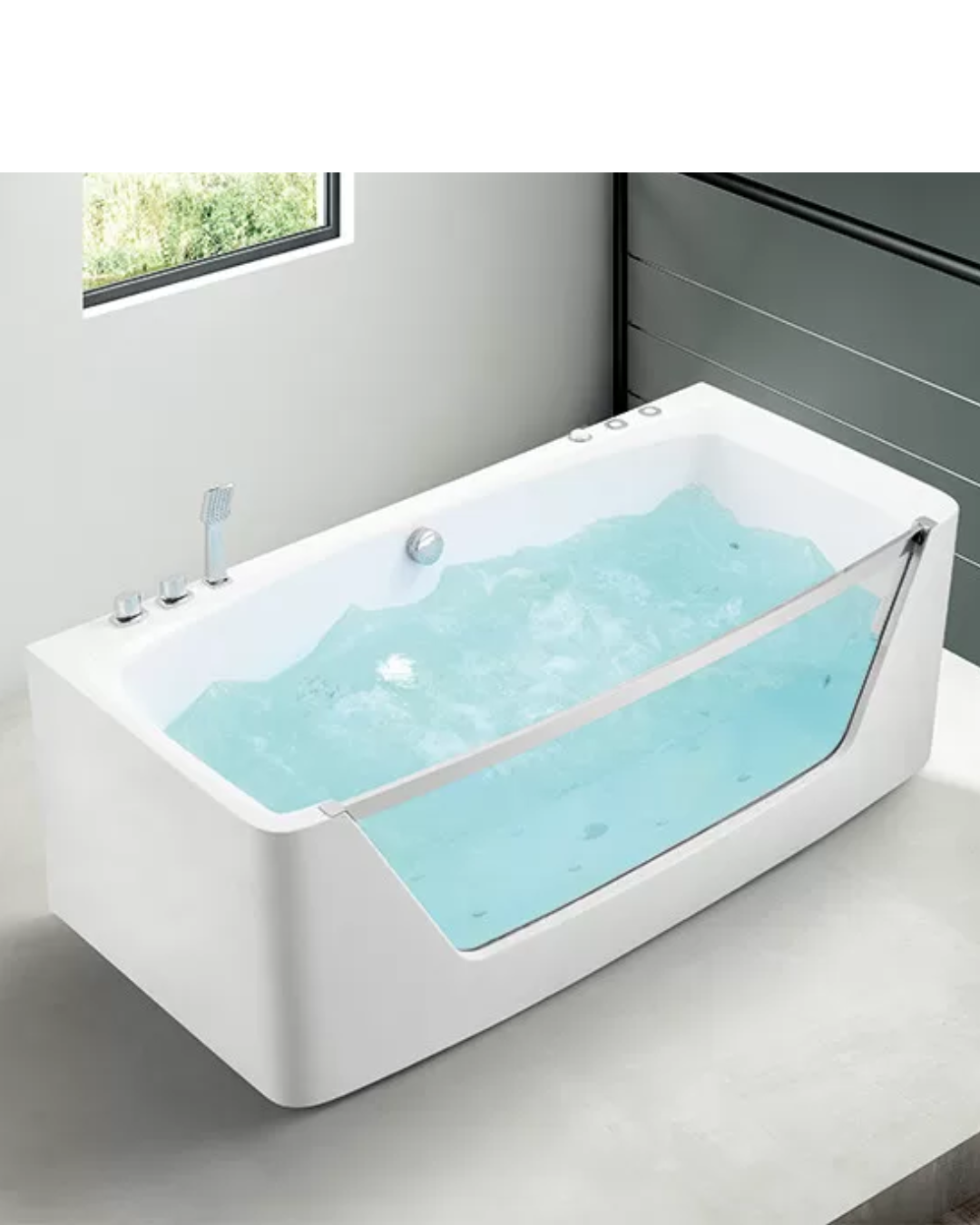 Banheira de massagem independente, avental de 3 lados, interruptor e regulador pneumático para massagem de água e massagem com bolhas de ar, design de vidro temperado de 8mm