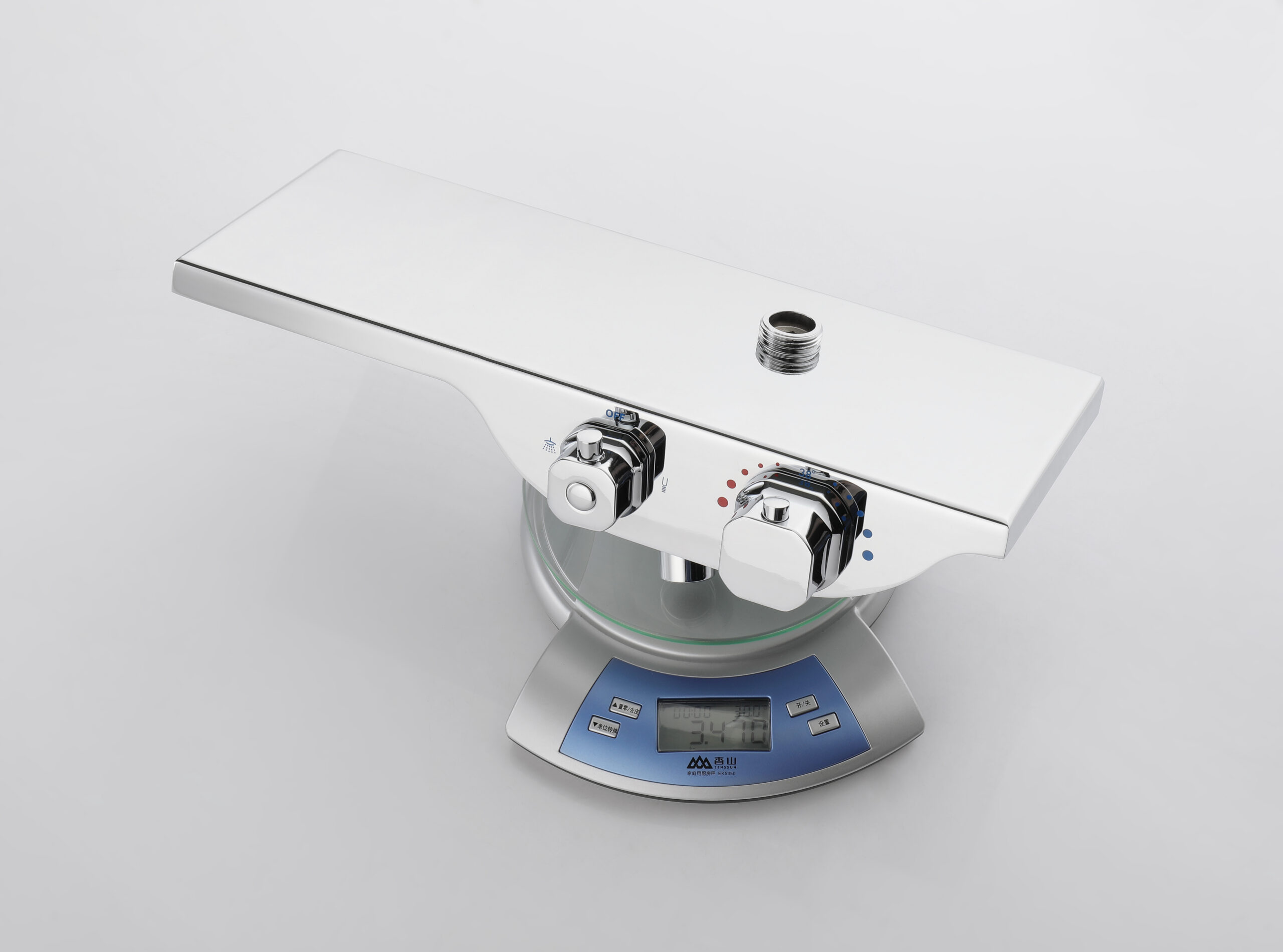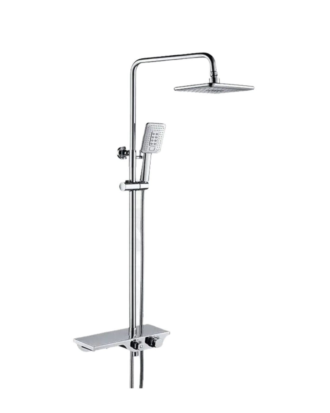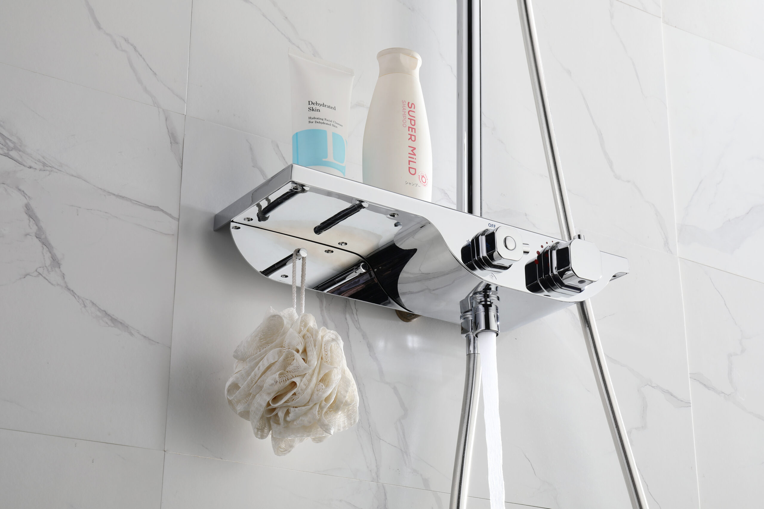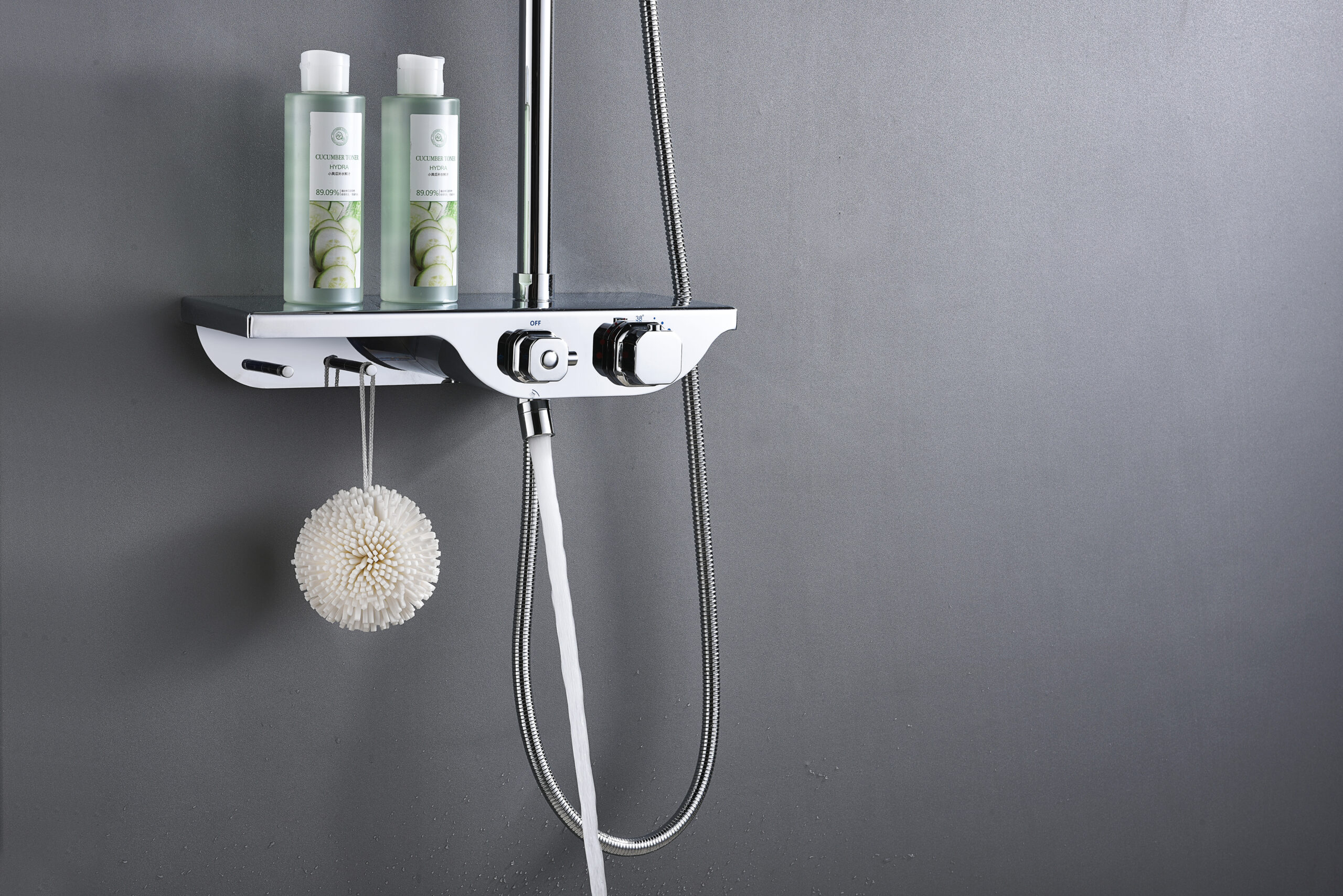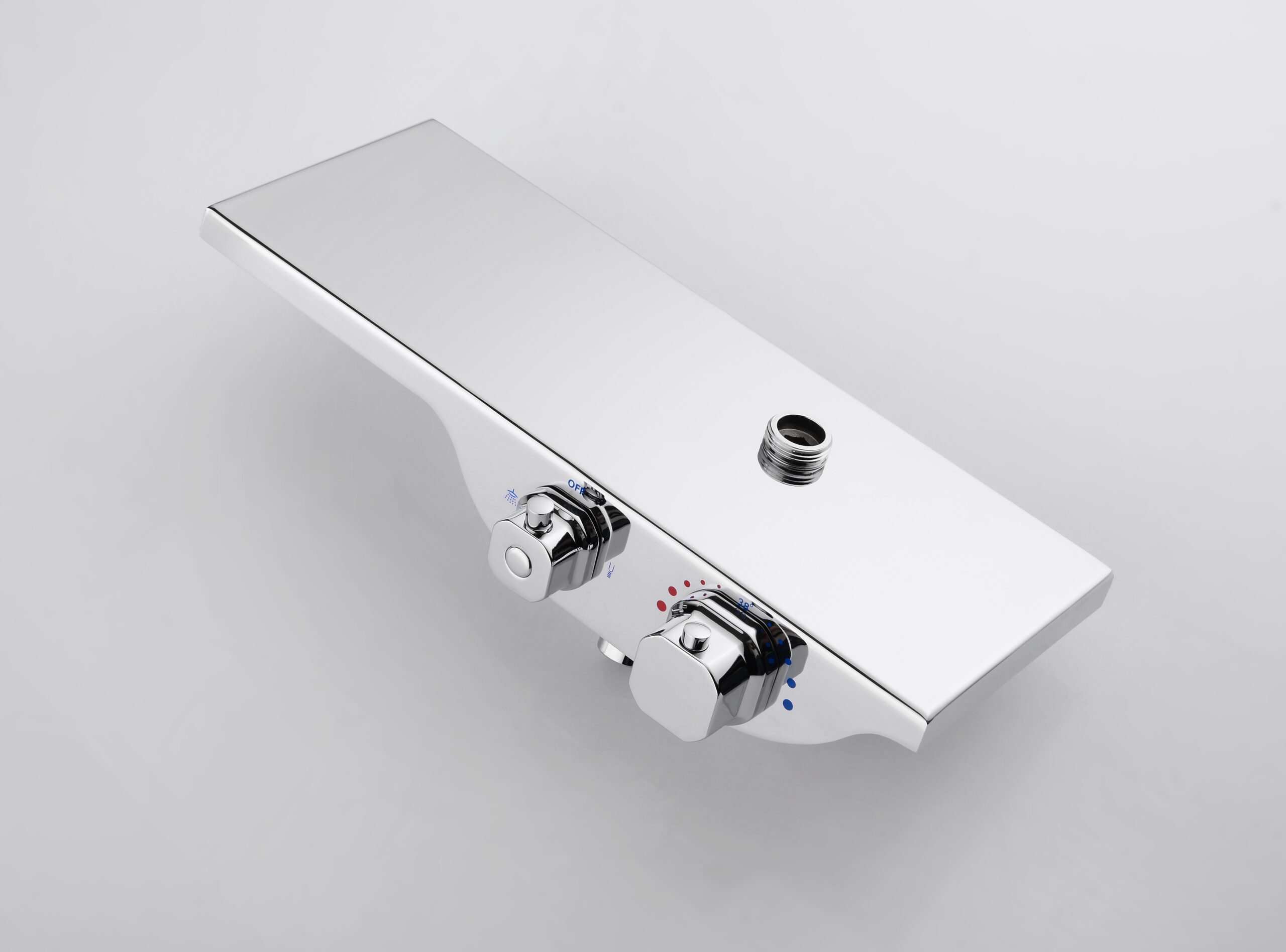 Chuveiro com termostato, completo digital de 4 funções, feito de metal.