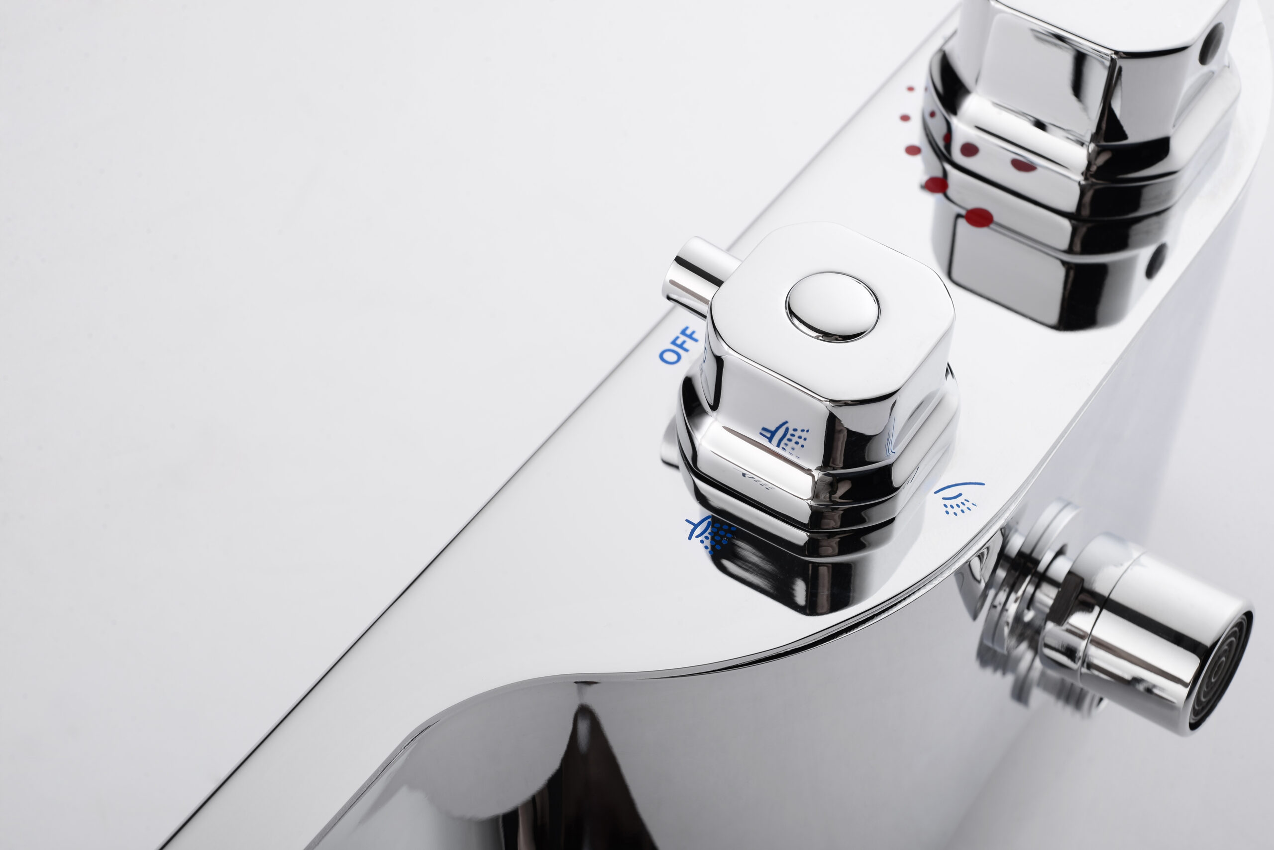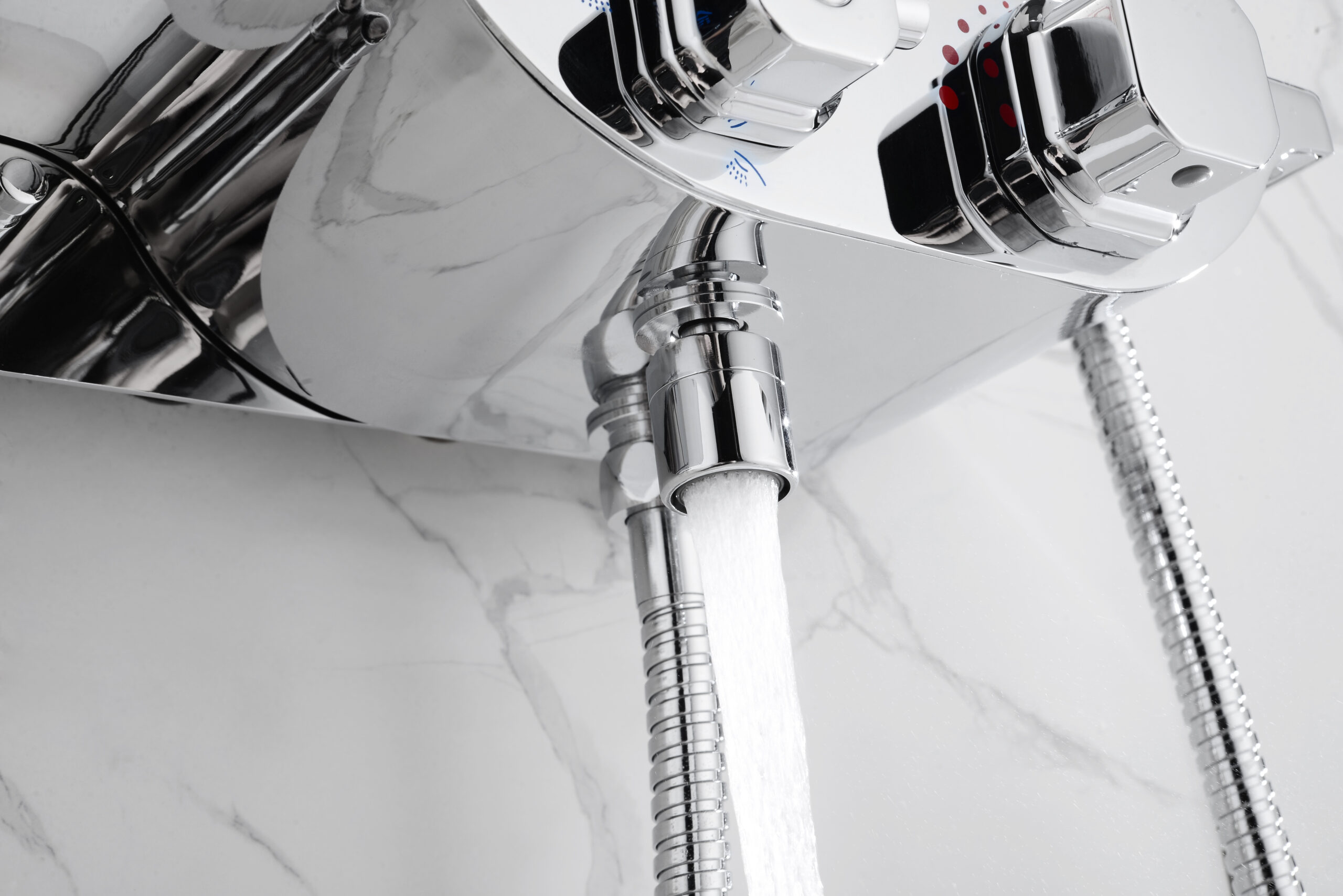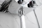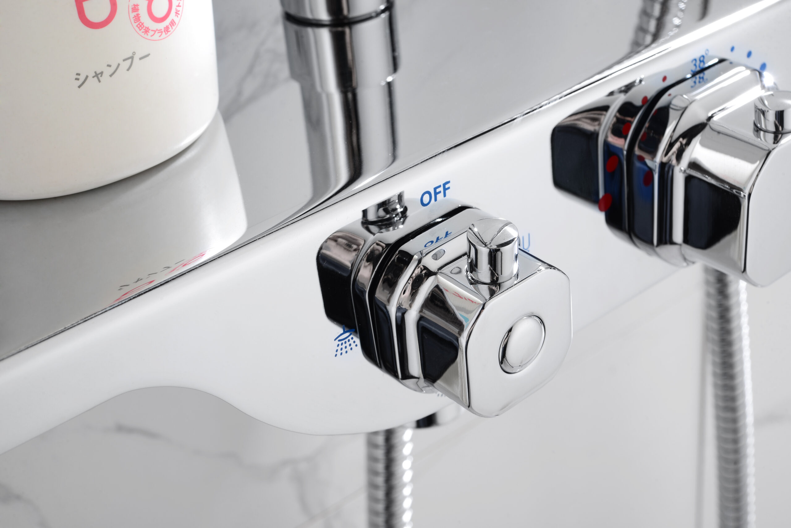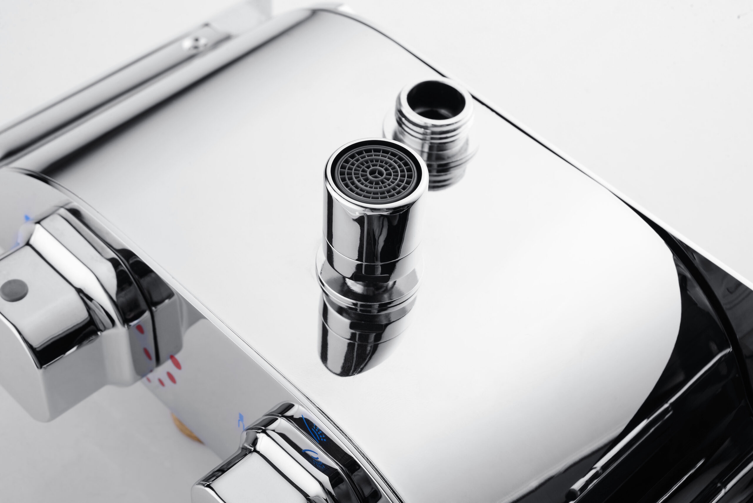 Chuveiro com termostato, completo digital de 4 funções, feito de metal.