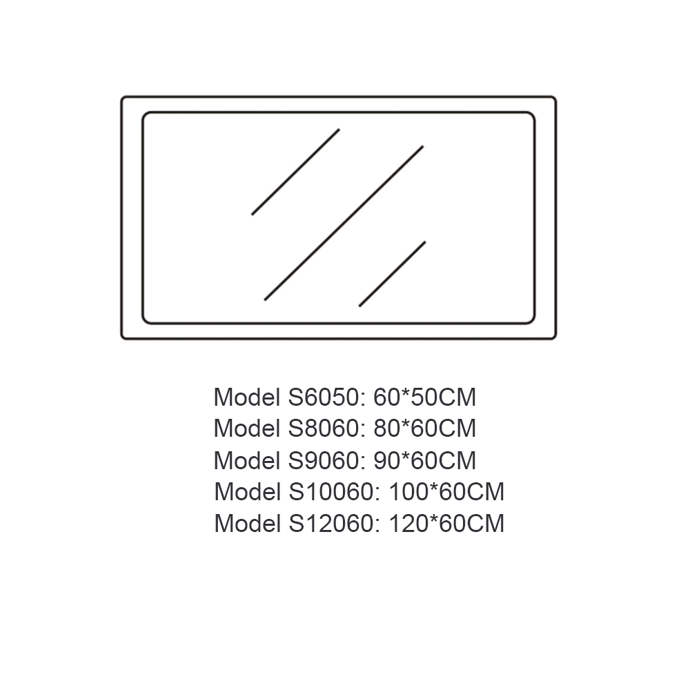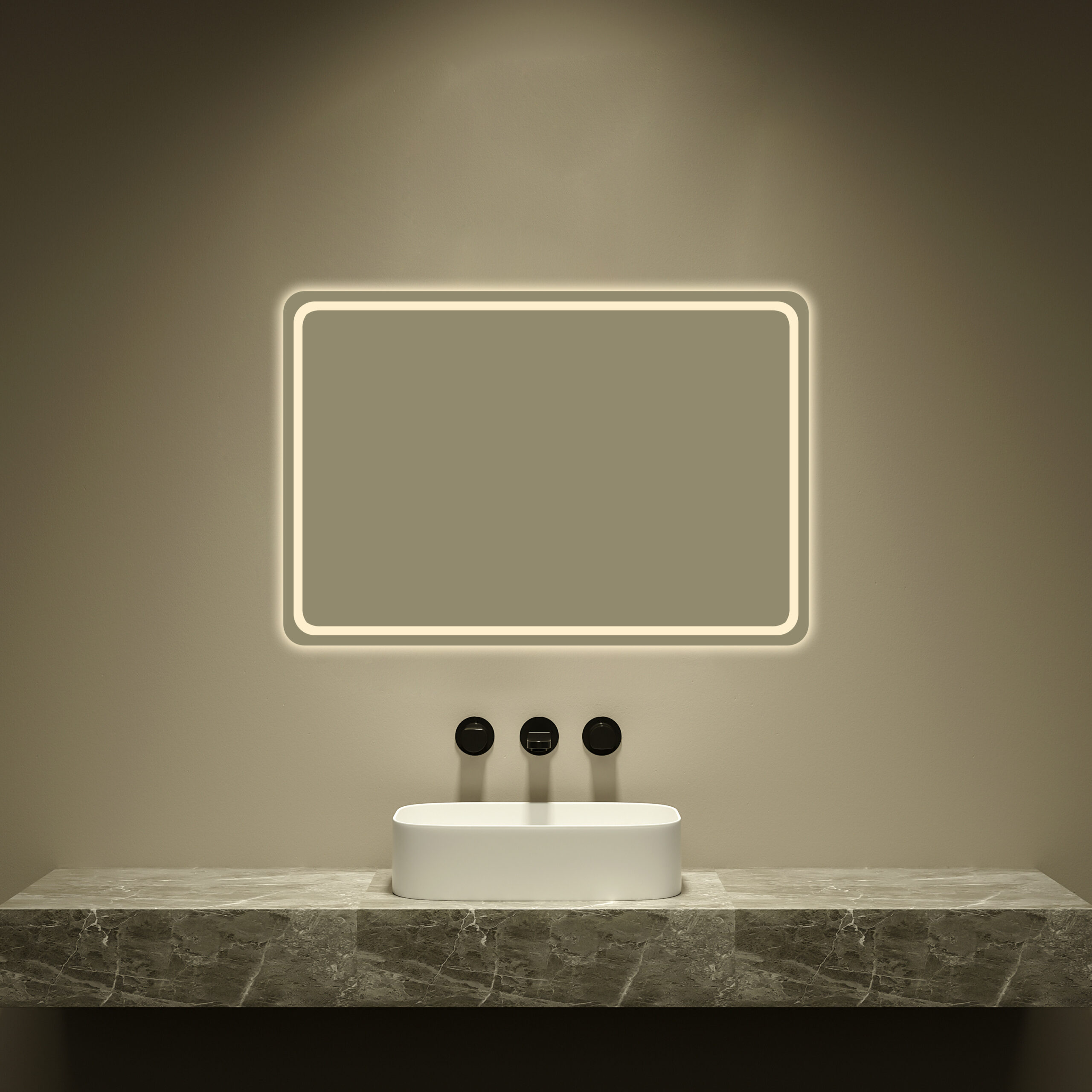 Espelho com luz LED de 3 cores, sem moldura de 4mm, com tampa traseira de PVC, com interruptor de toque único e certificado CE com garantia de 3 anos.