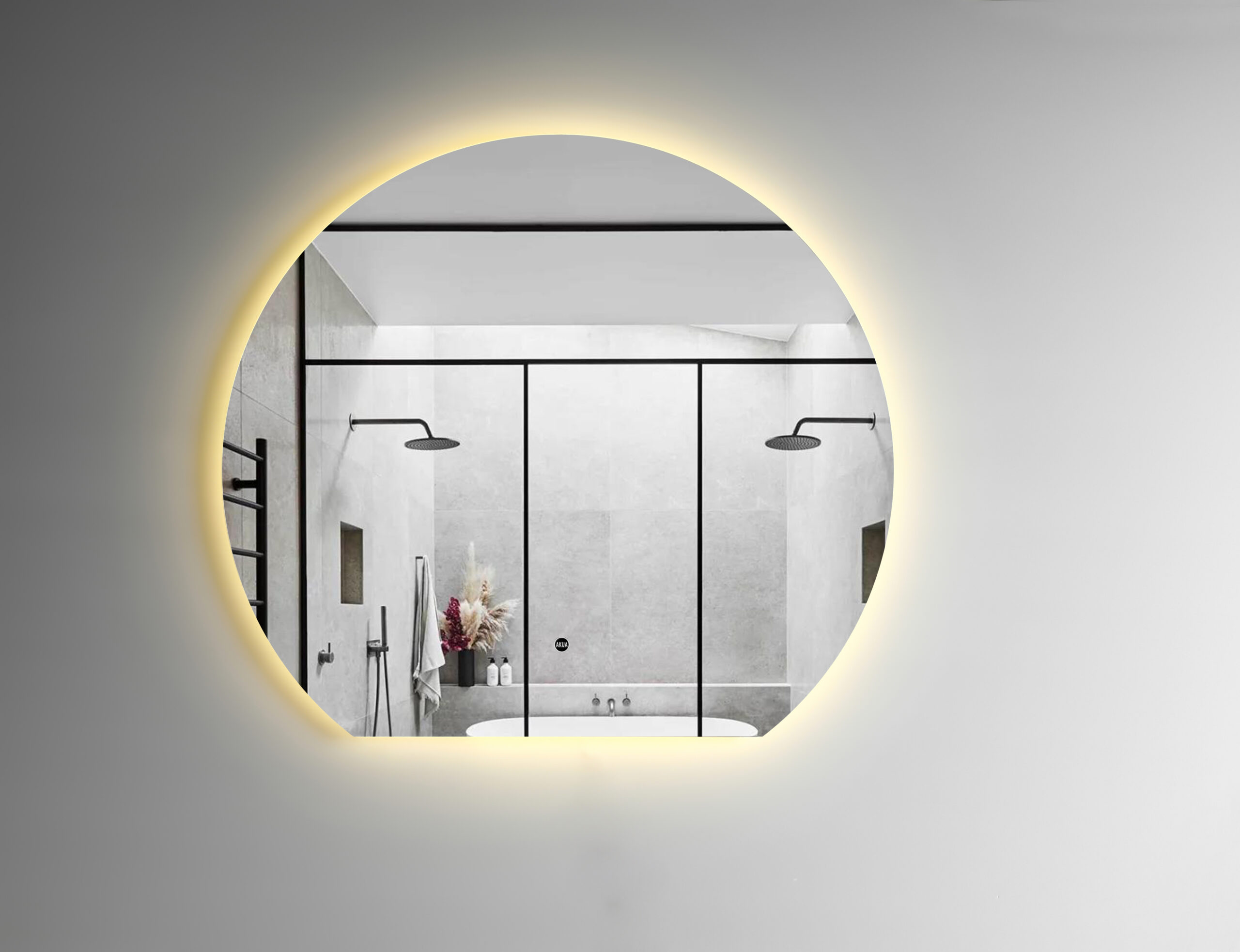Espelho de 4mm, com Led de com 3 cores, com tampa traseira em PVC , interruptor de toque único, certificado CE controle, e 3 anos de garantia