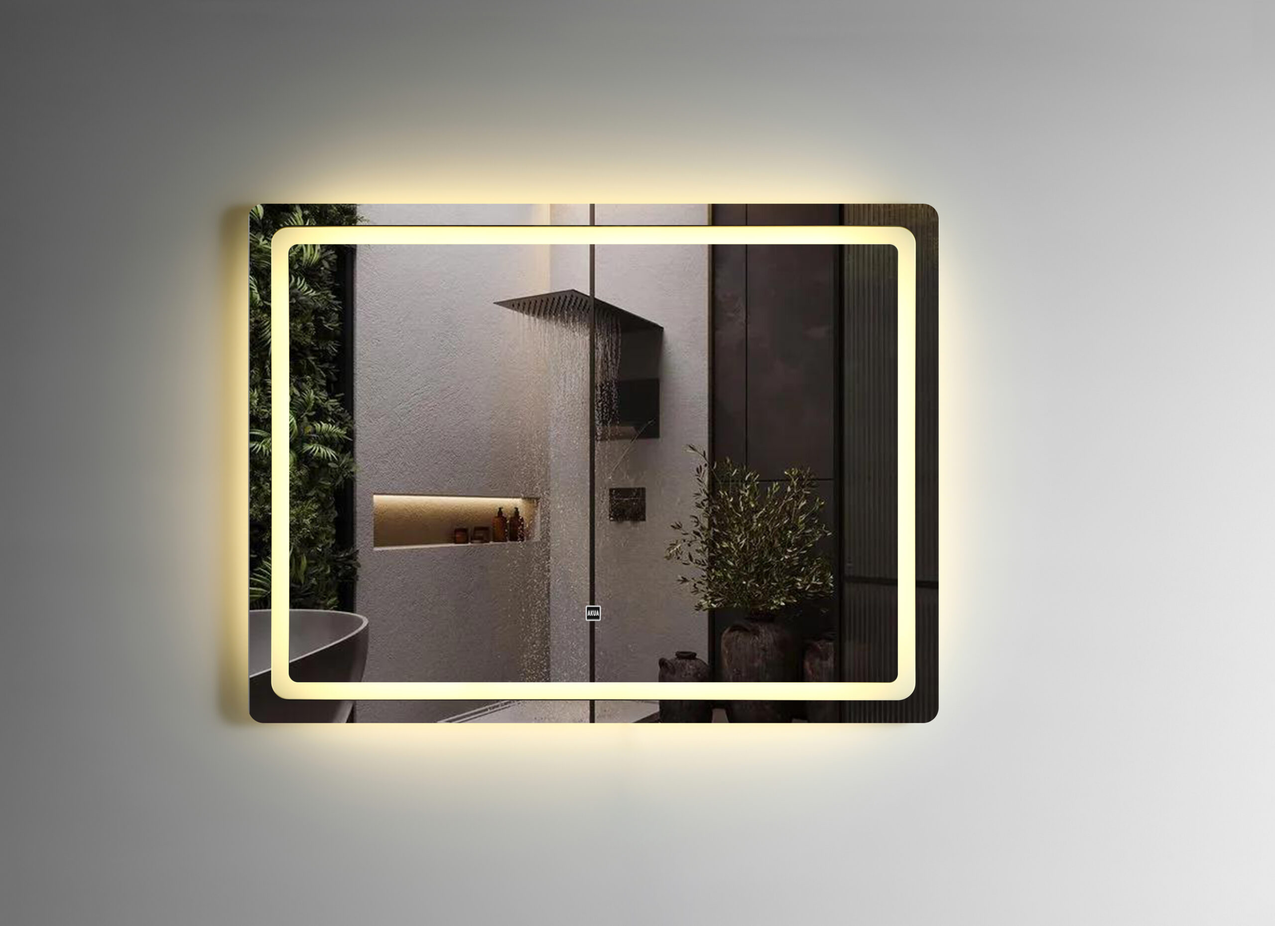 Espelho de 4mm,  com Led de com 3 cores, com tampa traseira em PVC , interruptor de toque único, certificado CE controle, e 3 anos de garantia