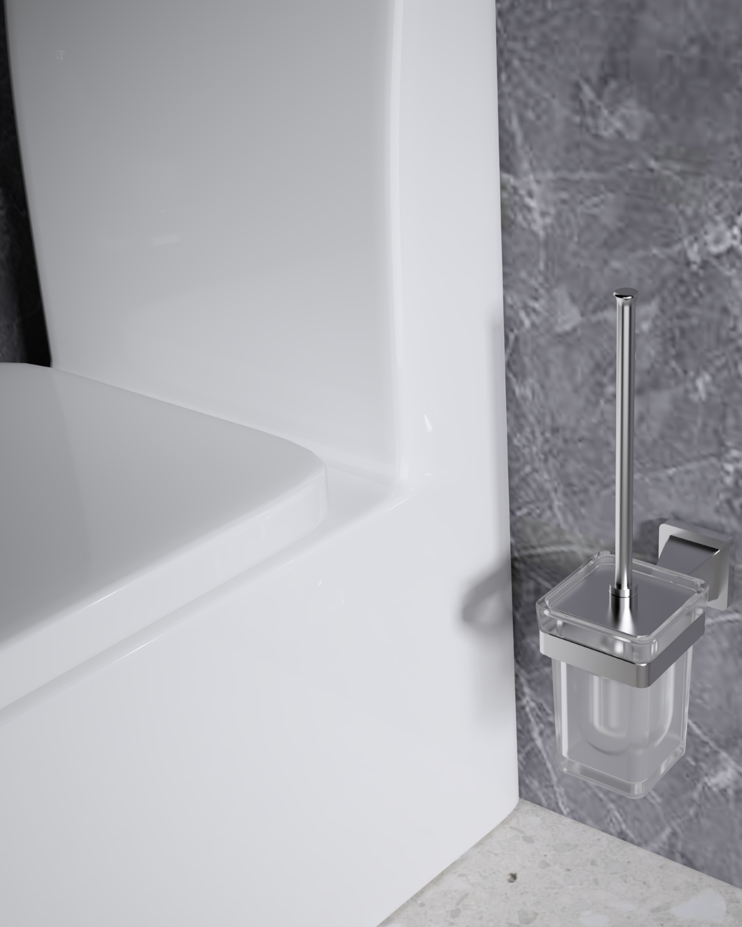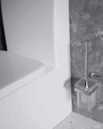 Porta escova de banheiro, copo de vidrofosco e suporte polido brilhante como um espelho que pode refletir