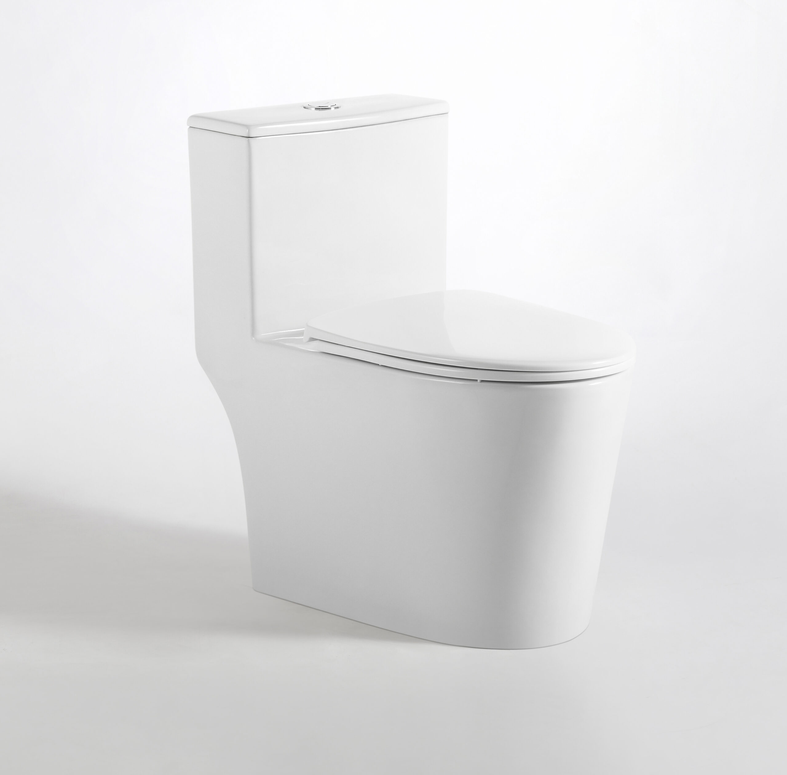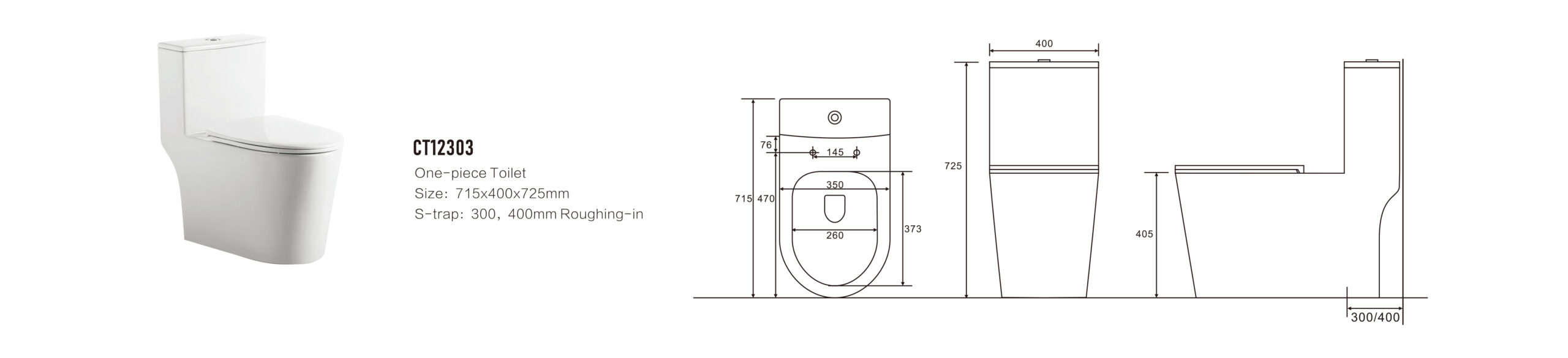 Sanita acoplada com descarga chão, com o sifão em S com desbaste de 300 mm, descarga sifônica de 2 furos, assento UF
