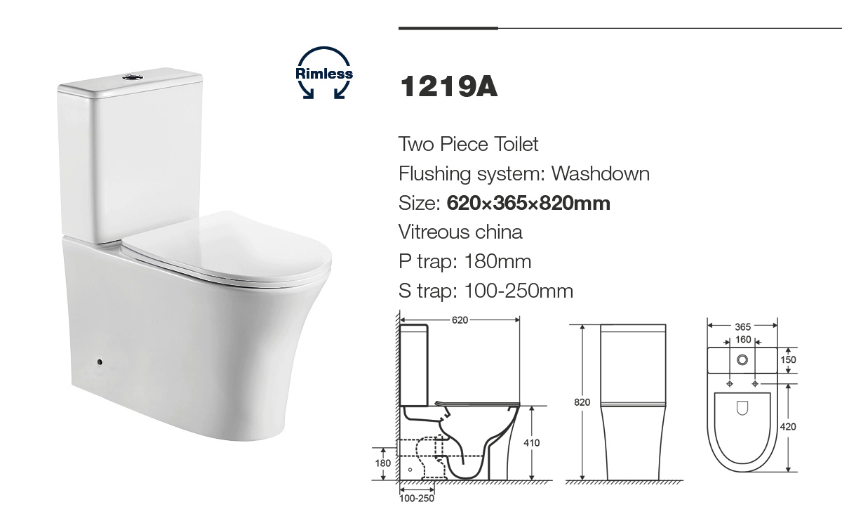 Vaso sanitário de duas peças com assento em UF, com sistema soft close e descarga sem aro Tamanho: 650 x 340 x 770 mm Sifão em P, 180 mm de desbaste